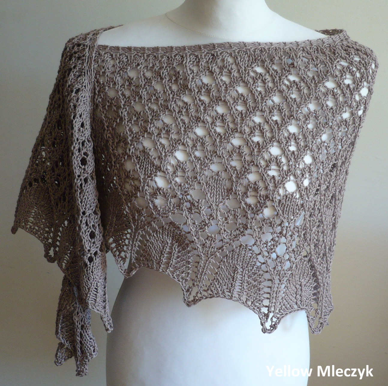 Wzór jest w pdf i podane są w nim wszystkie potrzebne informacje oraz schemat i opis słowny oczko po oczku. Jest to dość prosty wzór, możliwe jest wykonanie go jako pierwszą chustę ażurową. Wymagać to będzie oczywiście sporo samozaparcia, ale z drugiej strony ja zapewniam pomoc i wsparcie 🙂