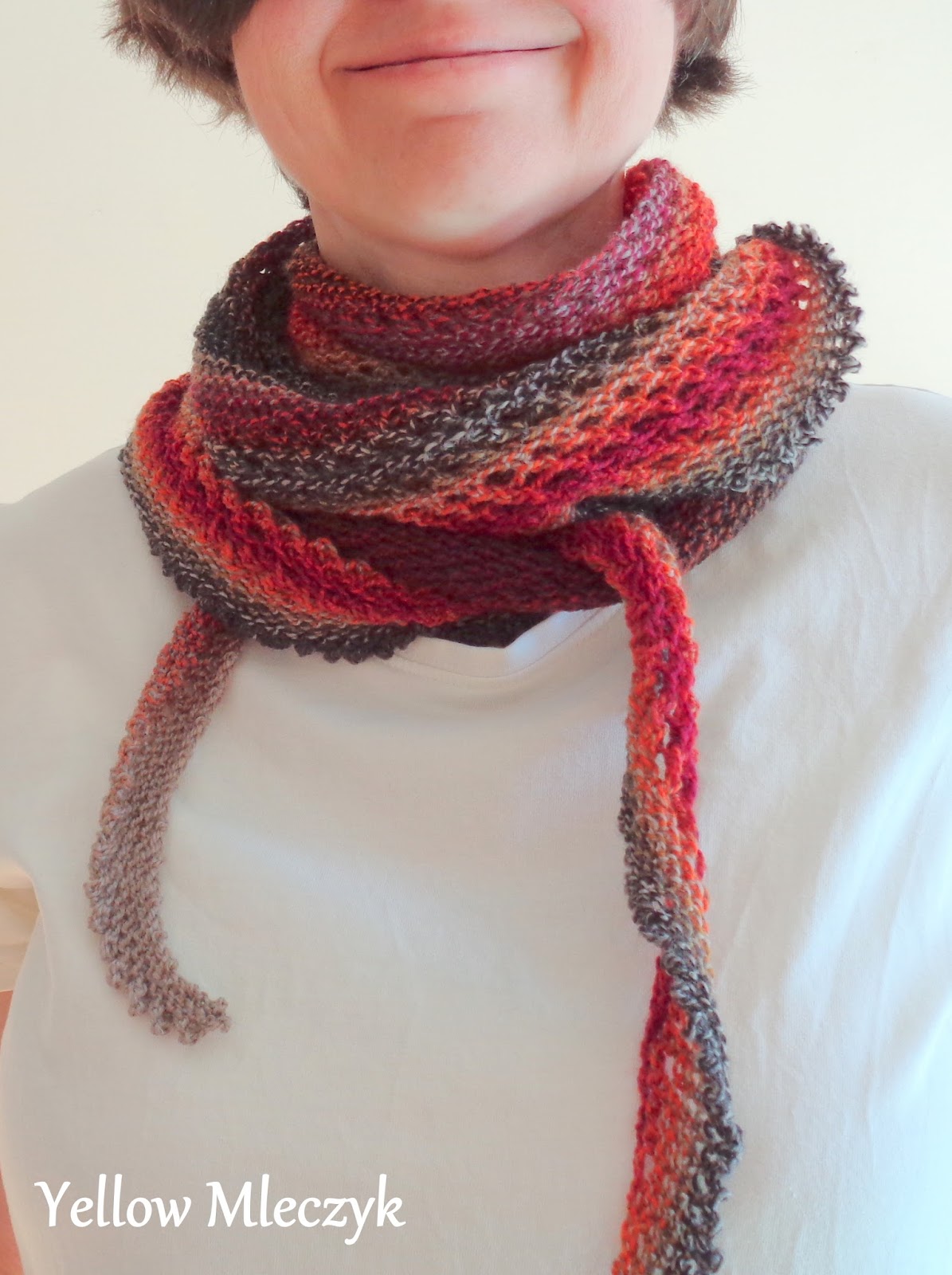 Jako idea, bo kolor zupełnie nie mój, i tej konkretnej chusty nosić na pewno nie będę.