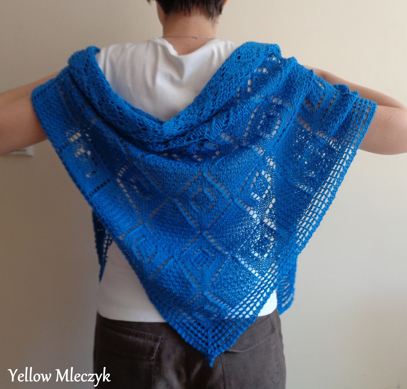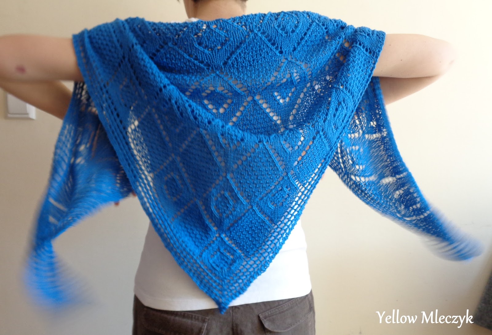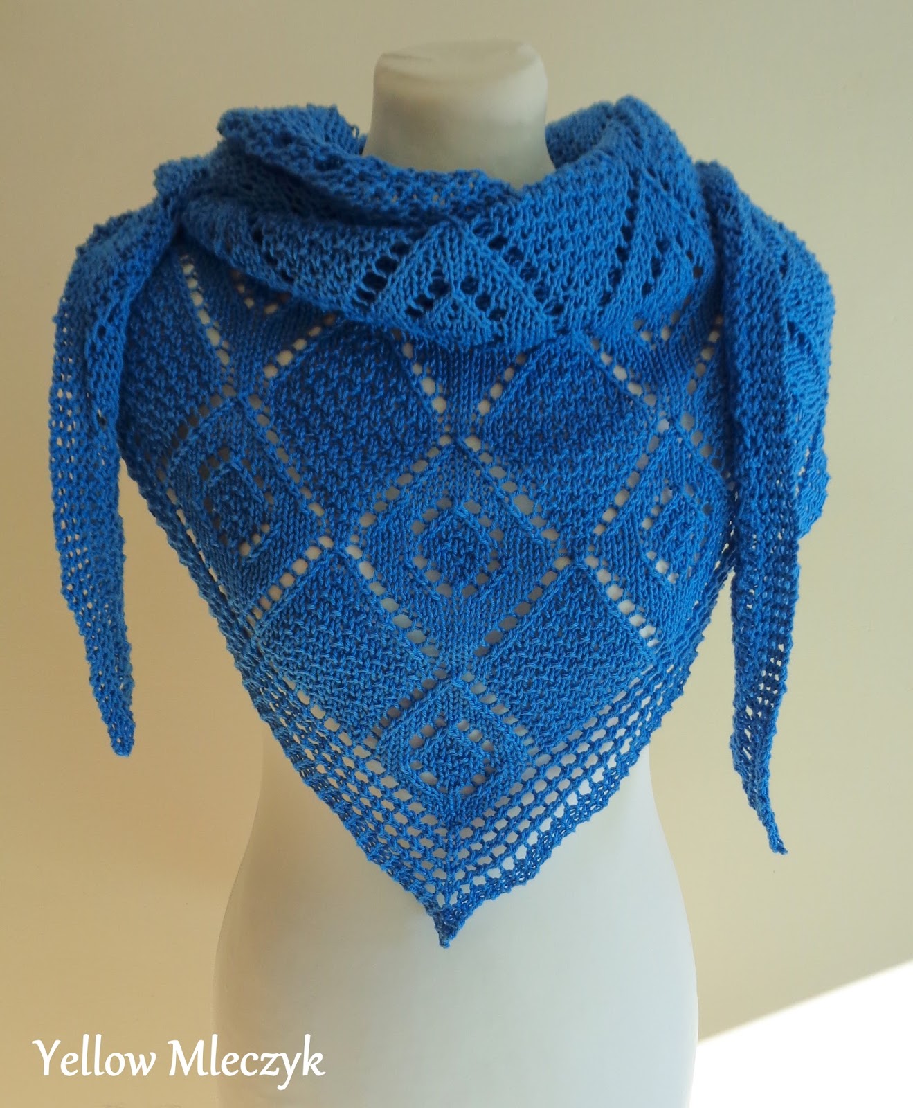 Wzór jest w pdf i podane są w nim wszystkie potrzebne informacje oraz schemat i opis słowny oczko po oczku. Jest to dość prosty wzór, może być wykorzystany na pierwszą chustę ażurową.
