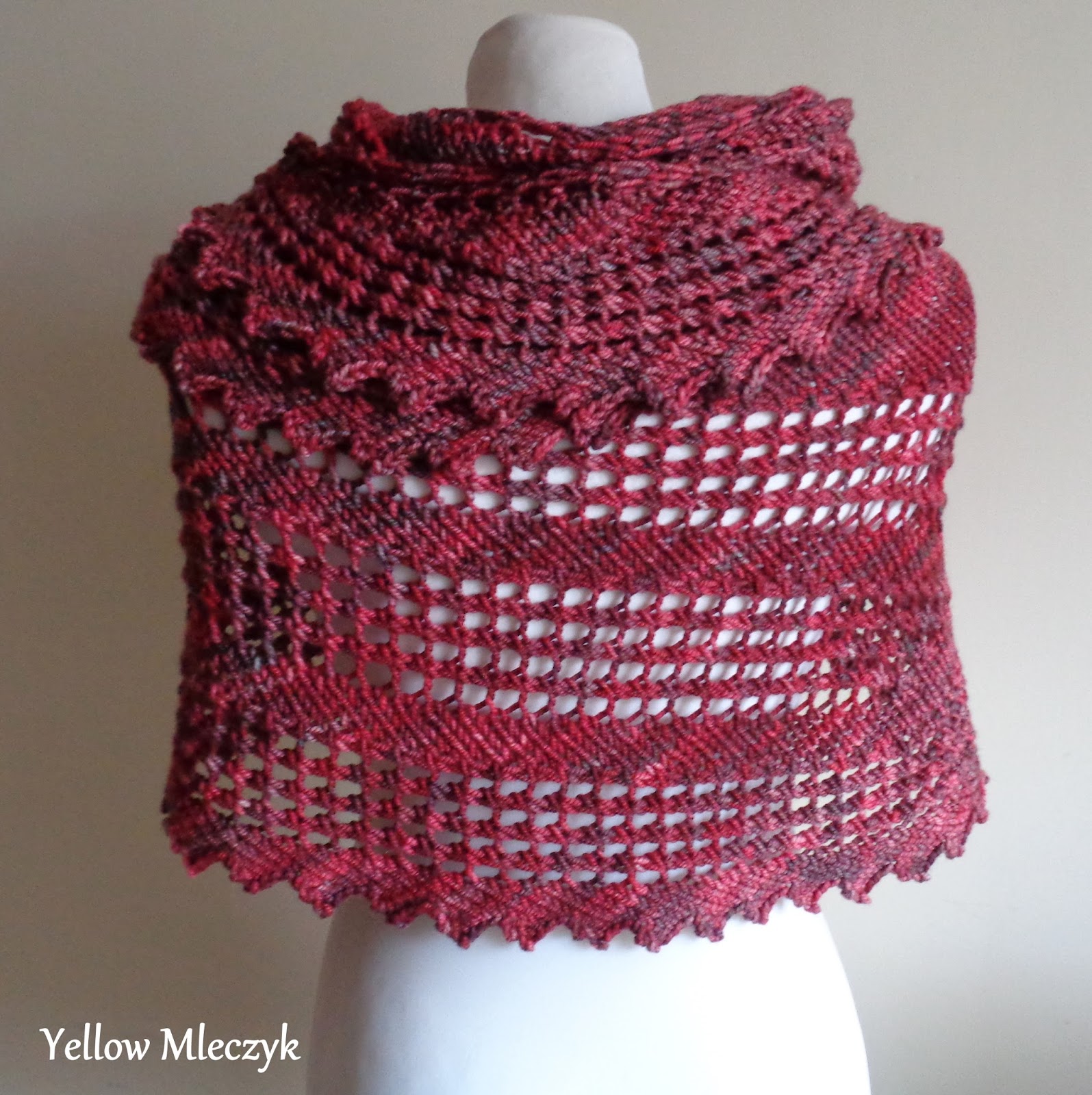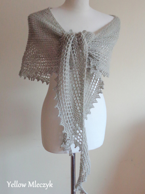 Wzór jest w pdf i podane są w nim wszystkie potrzebne informacje i opis słowny oczko po oczku. Jest to prosty wzór, idealny na pierwszą chustę ażurową.