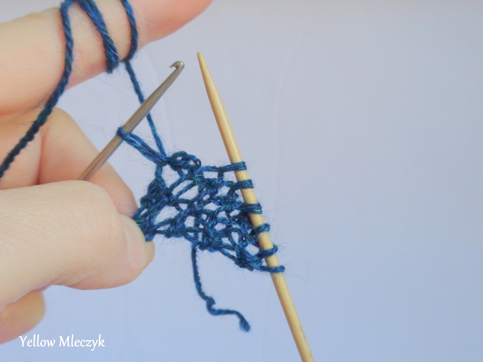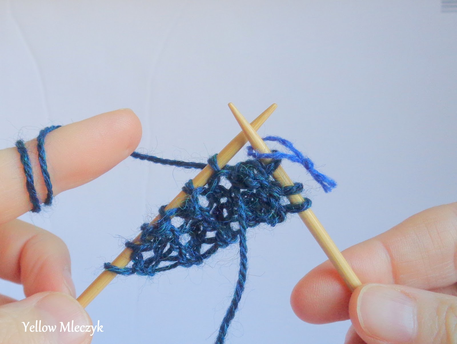 Zrób narzut. Dla tych co nie wiedzą, co to narzut – bo przecież miały prawe i lewe wystarczyć! – to jest takie coś, jak na zdjęciu. Włóczka narzucona na drut bez żadnego oczka i przerabiania.