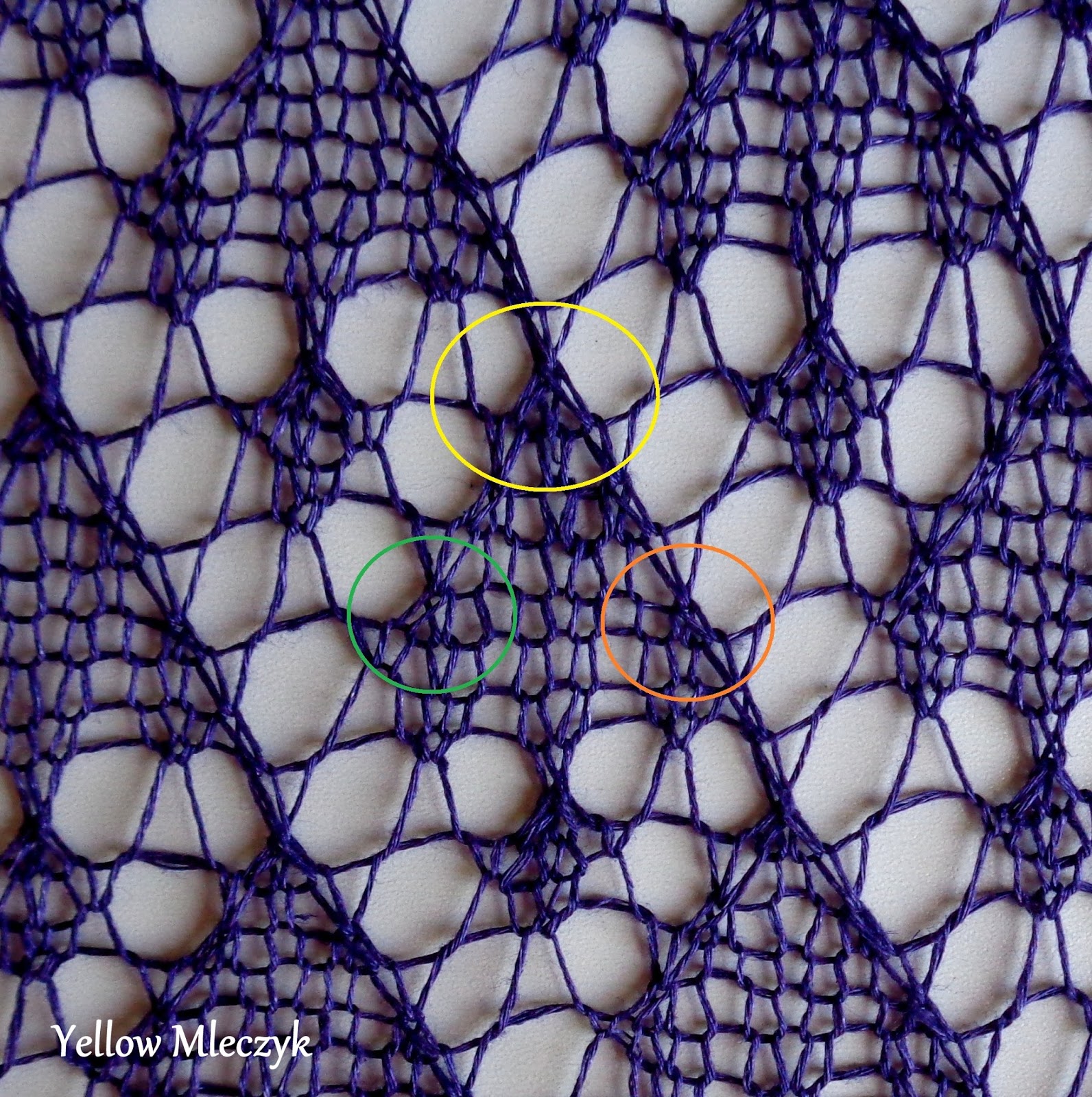 Moja turkusowa jest zrobiona z 31 oczek, śliwkowa z 79.
