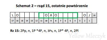 Przy ostatnim powtórzeniu wzoru głównego zmienia się wykonanie rzędu 15 – patrz schemat 2 lub opis pod nim.